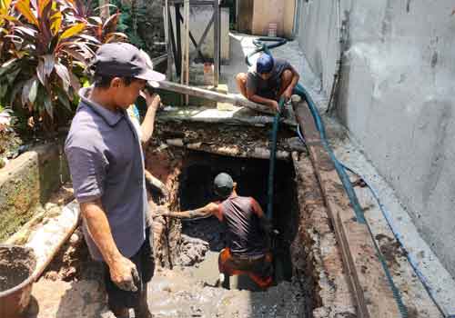 Kami menawarkan layanan sedot limbah dan sampah yang menyumbat saluran drainase.